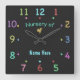 Customize a fun analogue clock with bright colored numbers and dots and a little bird for a nursery or daycare. If you want different wording or a different animal, send a note et I'll create another clock !