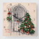 Horloge de vacances avec une vitrine vintage de Noël du sapin de Noël et lumières brillant la nuit par une belle fenêtre.