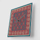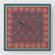 Sur Elegant, square Wall Clock with a formalised floral pattern in beige and dark blue on a rich burgundy background.