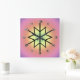 Star in black has the ends of its points on metallic looking numerque. Background is a diffused rainbow circle blending from green in center to purple at the edges.