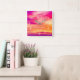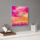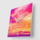 This clock has a brillant image of the sky during a sunset in vibrant colors of purple and yellow, and encouraging words: Cloudy skies make beautiful sunsets.