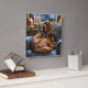 Une scène de vacances pleine de charme avec un chien assis paisiblement à côté d'une fenêtre, entouré de lumières de Noël éclatantes. Ce design cosy et festif reflète l'esprit de la saison, parfait pour ajouter chaleur et charme à tout espace. Idéal pour les amoureux de les chiens et les amateurs de décoration de vacances.