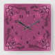 Horloge Carrée Coeurs avec fleurs et papillon en style tatouage
