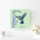 Horloge Carrée Colibri Design Fleurs Botaniques Amateurs d'oiseau