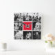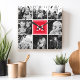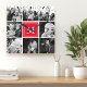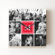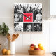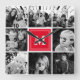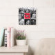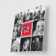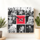 Horloge Carrée Collage photo de famille à monogramme rouge