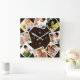 Photo de famille Collage rustique Ferme Brown foncée Carré Horloge murale