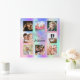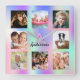 Un cadeau unique ou un traitement pour vous-même, votre famille célébrant votre vie avec un collage de 8 de vos propres photos, images. Personnalisez et ajoutez votre nom de famille et votre lettre de monogramme. Un fond coloré arc-en-ciel tendance, holographique en violet, rose, or rose et vert menthe. Texte rose et noir. Le nom est écrit avec un style de lettrage à la main moderne.