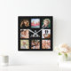 Horloge Carrée Collage photo personnalisé famille monogramme nom