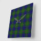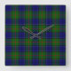 Horloge Carrée Colquhoun tartan bleu vert plaid
