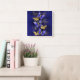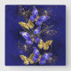 Composition de luxueux papillons saphir et bijoux en or sur arrière - plan à texture bleue.