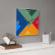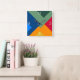 Plusieurs carrés bloqués de couleur disposés en couches pour faire un motif géométrique.