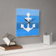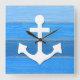Conception orientée nautique avec la décoration d'ancre sur l'arrière - plan en bois bleu et gris rayé. Veuillez noter ceci n'est pas fait de bois, il est une copie graphique en bois.