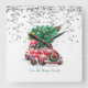 Voiture rouge adorable, pin avec neige, confetti d'argent sur un arrière - plan blanc.