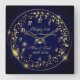 Horloge Carrée Confettis brillants dorés, Bleu 50e anniversaire d