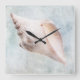 Horloge Carrée Coquillages Perturbés Crème Bleue Côtière Aquarell
