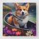 Horloge Carrée Corgi sur une pagaie : une aventure Pittoresque