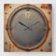 corroded steel circle, metal look, industrial style, red rust, weathered steel surface, aged steel, wall clock,