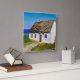 Maison blanche surplombant l'océan. Un vieux Croft en pierre avec un toit de chaume, et une porte rouge accueillante. Un cadeau parfait pour le chauffage d'une maison. Ce serait un beau cadeau à offrir pour la cuisine de quelqu’un. L'original a été peint à l'aide d'acryliques de style impressionniste. Par Charlotte Foster à RivvyArts
