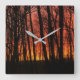 Horloge Carrée Coucher de soleil sur la forêt de feu