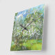 Artiste de Zolotareva. aquarelle sur soie - Main originale Aquarelle peinte art. Vue Extraordinaire. Beau jardin. Les pommiers sont en pleine floraison.