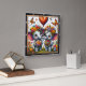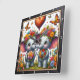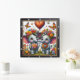 Cette charmante horloge murale carrée présente une illustration numérique fantaisiste de deux éléphants bébés debout ensemble dans une prairie vibrante de fleurs sauvages. Chaque éléphant est orné d'une grande couronne colorée faite de marguerites et de roses, et ils tiennent tous les deux des bouquets de fleurs assortis dans leur trompe. Un grand ballon en forme de cœur à motif flotte entre eux, tandis que des papillons lumineux dansent à travers le fond aérien et blanc. La scène est remplie de petits cœurs flottants et d'un tapis végétal luxuriant de fleurs diverses. L'œuvre d'art est logée dans un cadre moderne en bois noir avec des chiffres blancs gras pour une visibilité claire. Cet accessoire de maison fonctionnel est un élément décoratif idéal pour les nurseries, les salles de jeux ou comme un cadeau doux pour la Saint-Valentin. Sa composition joyeuse et ses