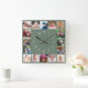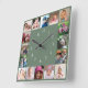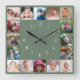 Horloge Carrée Create Your Own 16 Family Photo Collage Green
