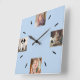 Horloge Carrée Créez votre propre 4 photo moderne bleu clair