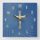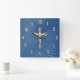 Horloge Carrée Croix d'or Arrière - plan Blue Swirl