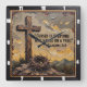 This powerful wall clock features a rugged wooden cross standing on a textured hill, with a crown of thorns resting below, all beneath a somber, stormy sky. The profound scripture, "Cursed is everyone who hangs on a tree." (Galatians 3:13), is prominently displayed. With its intense, textured artistry, this timepiece serves as a deep reminder of Christ's sacrifice, transforming a curse into a path of redemption and blessing for humanity.