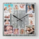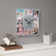 Horloge Carrée Custom 12 Family Photo Collage Rustic Gray Wood