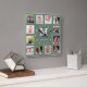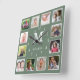 Horloge Carrée Custom 12 Photo Collage Family Name Monogram Green