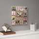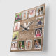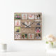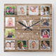 Horloge Carrée Custom 12 Photo Collage Family Name Monogram Wood