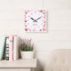 Brighten up any room with this sweet and customizable square wall clock! Featuring a lovely, playful border of various pink and brown paw prints interspersed with charming hearts and sparkling details, this clock is perfect for any dog or cat lover. The center features a customizable area where a name, like "Olivia" in the example, is prominently displayed in a pretty pink font, making it a truly personal and heartfelt piece of decor. Against the clean white background, the pink numbers and accents stand out clearly. This clock makes a wonderful housewarming gift, a beautiful addition to a nursery, or a thoughtful way for any pet owner to celebrate their beloved furry friend.