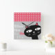 Horloge Carrée Cute Chat Noir Pois Rose Ajouter Votre Nom