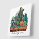 Horloge Carrée Cute Watercolor Cactus Garden