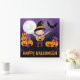 Horloge Carrée Cute Witch Girl and Pumkins Happy Halloween