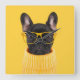 French bulldog puppy wearing yellow sweater and glasses