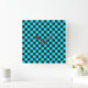 Horloge Carrée Cyan and charcoal checkerboard pattern
