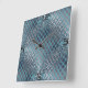 Un cyan dessinant sur des tons gris qui ressemble à un enchevêtrement de filet de pêche au-dessus d'une roche ou d'une pierre tordue.