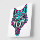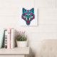 Horloge Carrée Cyberpunk Neon Wolf - Synthwave Robotic Animal