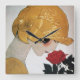 Illustration de haute couture Art Déco française, dynamique et classe. Portrait d'une belle jeune femme portant un casquette doré avec fleur, noir blanc, jaune, couleurs grises .Cool, design moderne et artistique.