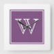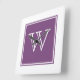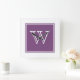 Ajoutez vos initiales ou tout autre texte pour customiser cette horloge carrée simple et moderne de monogramme dans pourpre et blanc. Cette horloge à la mode et chic ferait un accent élégant sur votre mur.