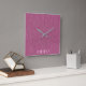 Découvrez une horloge carré très originale avec un beau tissu en denim rose ceint, recouvert de 3 coeurs imbriqués de taille décroissante dans le même tissu avec une belle couture en diagonale. Les coeurs ont un effet 3D très cool et la texture du jean est vraiment géniale. Nous avons ajouté un nom personnalisable au bas de l'horloge, écrit dans une police moderne et design rose clair. Veuillez remplacer le nom par défaut par le vôtre (ou par vos initiales monographiques), ou n'hésitez pas à le supprimer.