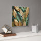 Horloge Carrée Design Feuille Tropical Vert Or Quilé