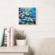 Horloge Carrée Design Floral Lily Bleu Avec Motif