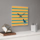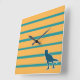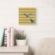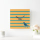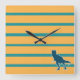 Horloge Carrée dinosaure t-rex jurassique rayures bleu jaune