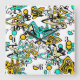 Doodle, abstrait, créatif, cyan, jaune, noir, blanc, mode, imaginaire