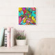 Horloge Carrée Doodle Art Abstrait coloré