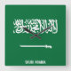 Horloge murale carrée patriotique du drapeau national de l'Arabie saoudite avec le drapeau du pays dans les couleurs nationales imprimées sur toute l'horloge. Le nom du pays est subtilement intégré dans le design en bas. Le texte est entièrement personnalisable à l'aide de la fonctionnalité "Personnalisez-le !". Cette conception charmante est le cadeau étonnant et la grande pièce à exposer sur le mur . 2022 CountriesOfTheWorld