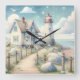 Horloge Carrée Dreamy Pastel Lighthouse by the Sea